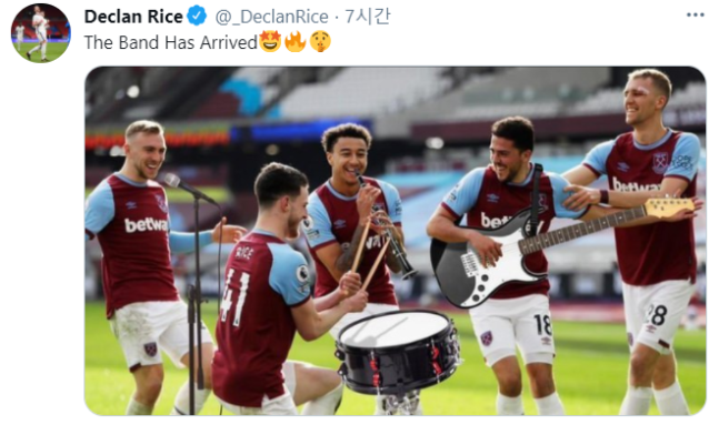 많은 이름으로 불리는 데요. 심지어 데클란 라이스 트위터에 올라온 밴드악기 합성사진이 정말 유쾌합니다. 하지만 이 경기는 토트넘팬인 제가 보기에 토트넘과의 경기에서 일어난 꽤나 얄미운 세레머니인데요. 린가드는 골을 넣고 나서 한번 세레머니를 했습니다. 그런데 그때 오프사이드 깃발이 들렸고, VAR를 돌려보다가... 결국 다시 골이 인정되었습니다. 이 세레머니는 그 2번째 세레머니때 한 것이죠.